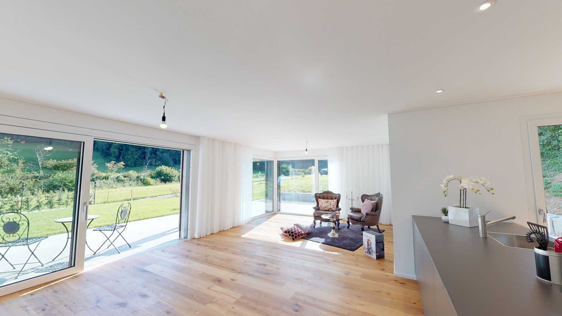 Zeigen Sie Ihre Immobilie oder Lokal zu jeder Tageszeit. Ebenfalls erhalten Sie hochauflösende 4k-Bilder zu Ihrem Rundgang für die Nutzung im Web, Broschüren etc.